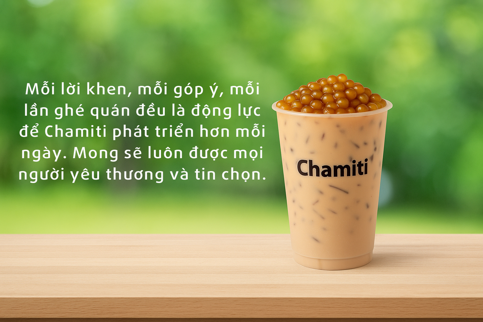 Mỗi lời khen, mỗi góp ý, mỗi lần ghé quán đều là động lực để Chamiti phát triển hơn mỗi ngày. Mong sẽ luôn được mọi người yêu thương và tin chọn.